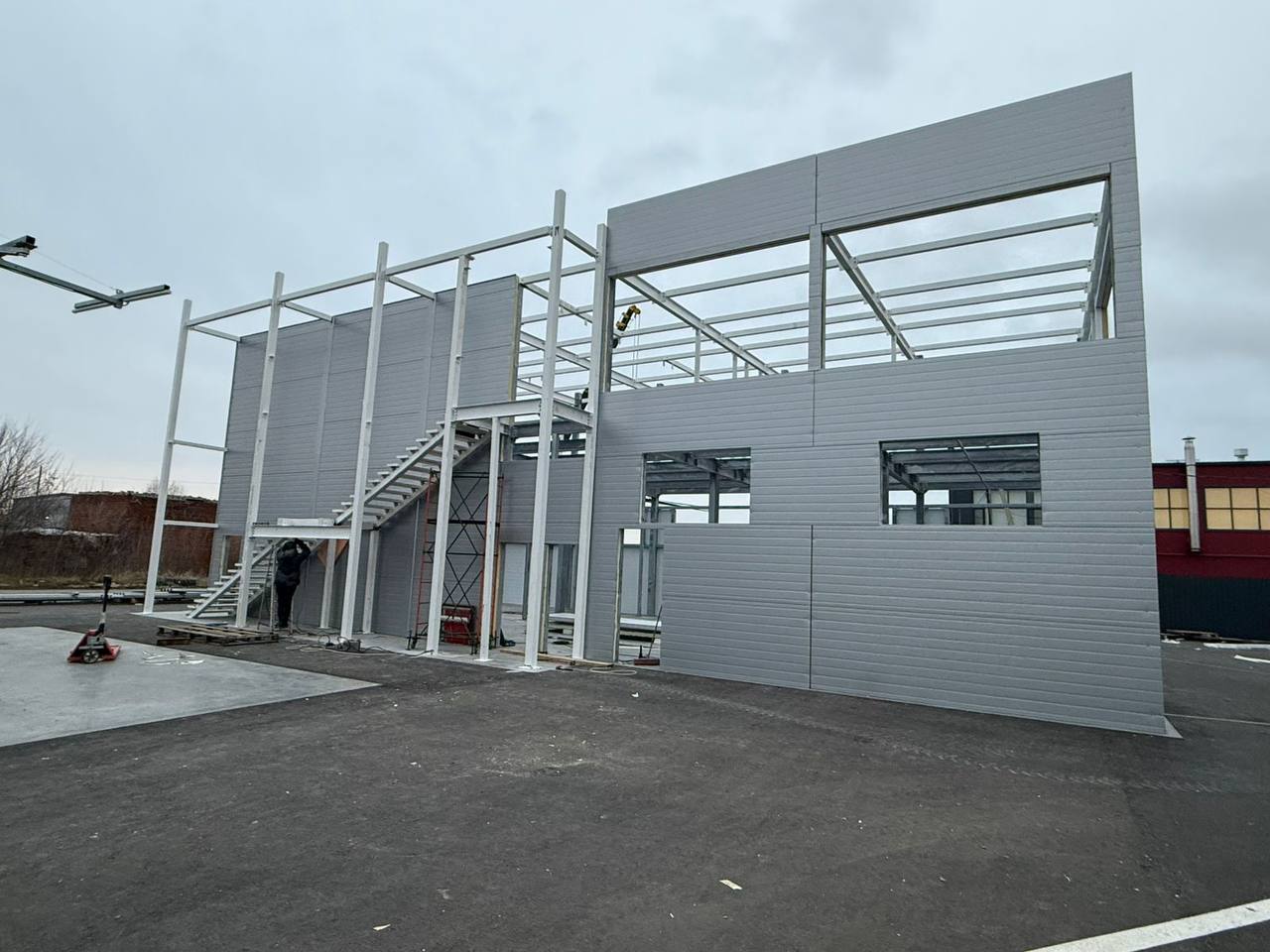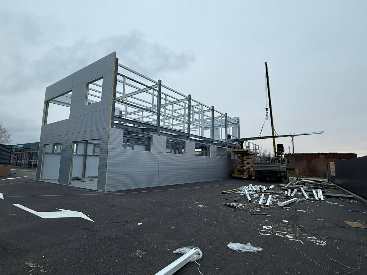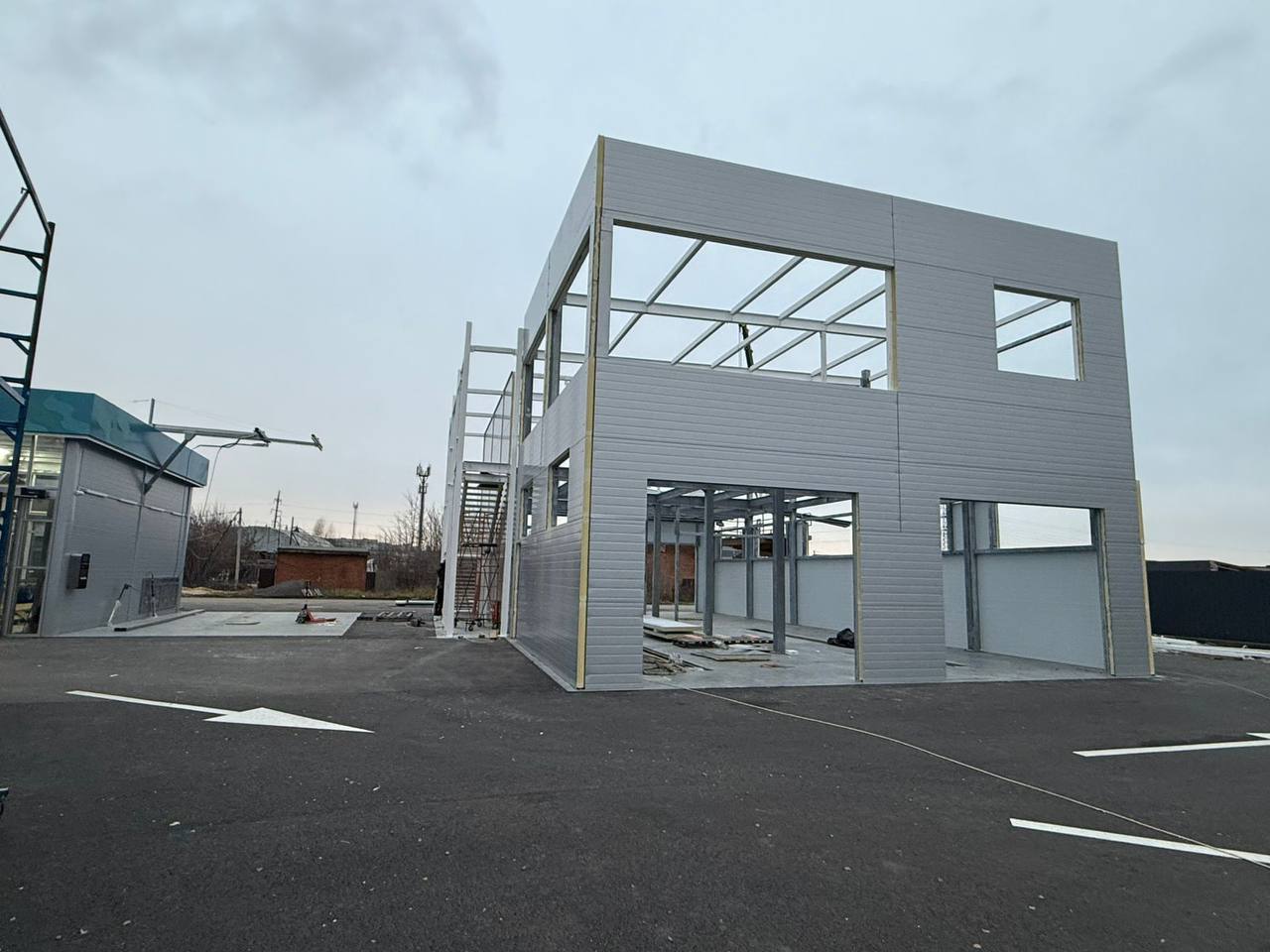 В городе Тамбов продолжается строительство нового здания детейлинг-центра. На текущем этапе выполняется монтаж ограждающих конструкций из сэндвич-панелей. Этот этап формирует внешний контур здания, обеспечивает теплоизоляцию и создаёт основу для дальнейших отделочных и инженерных работ.Реализация проекта позволит создать современное пространство для качественного обслуживания автомобилей, отвечающее высоким стандартам бренда.Узнайте больше об этапах строительства и отправьте заявку на расчет проекта вашей будущей мойки самообслуживания по телефону: 8 (800) 350-15-81 или оставьте заявку на обратный звонок.